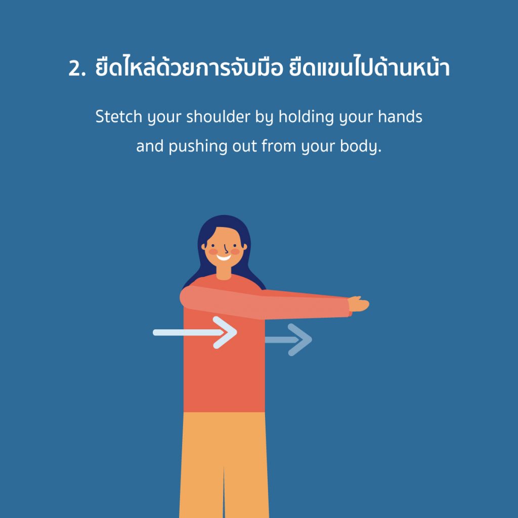 2. Stretch your shoulder by holding your hands and pushing out from your body.